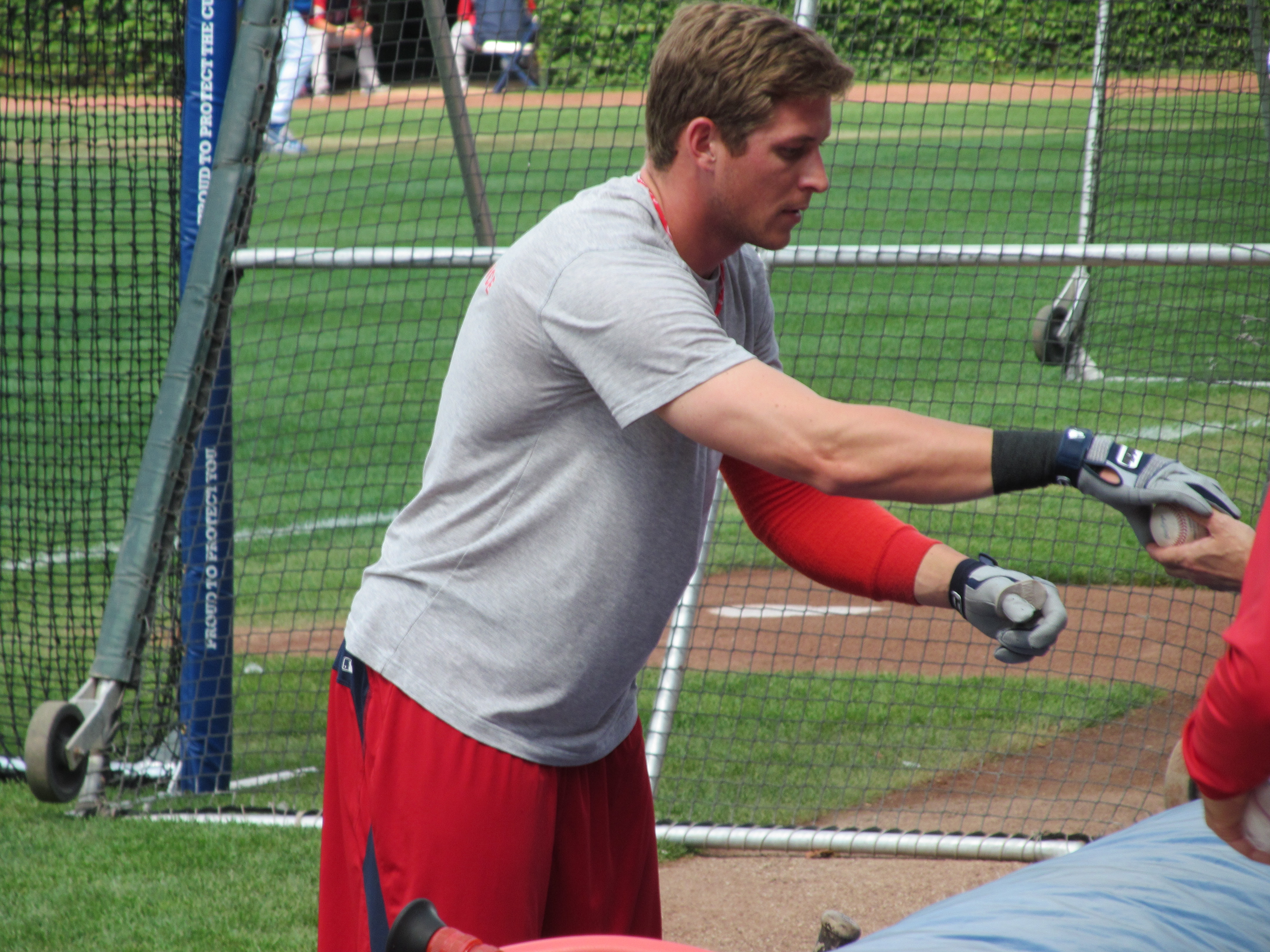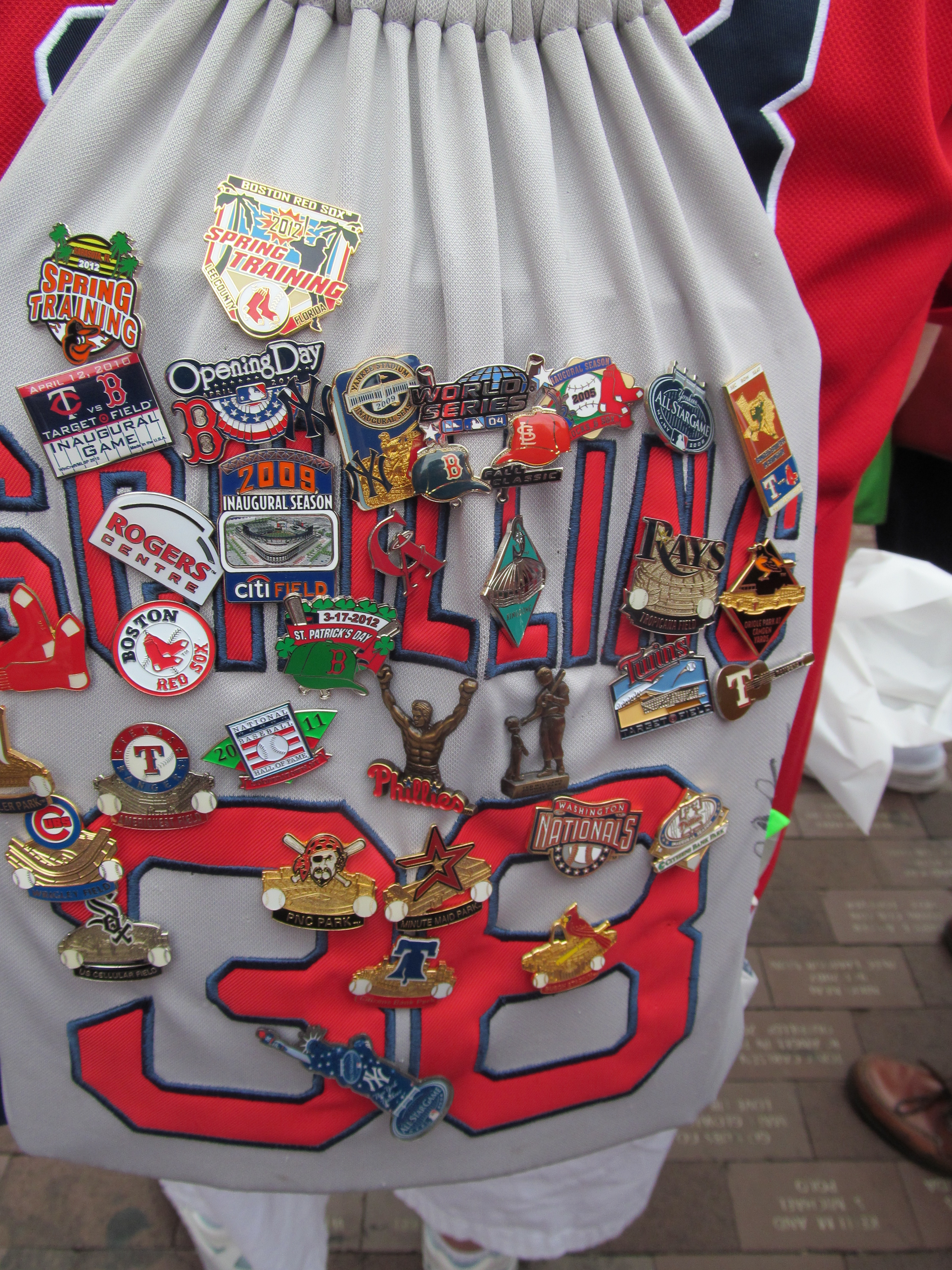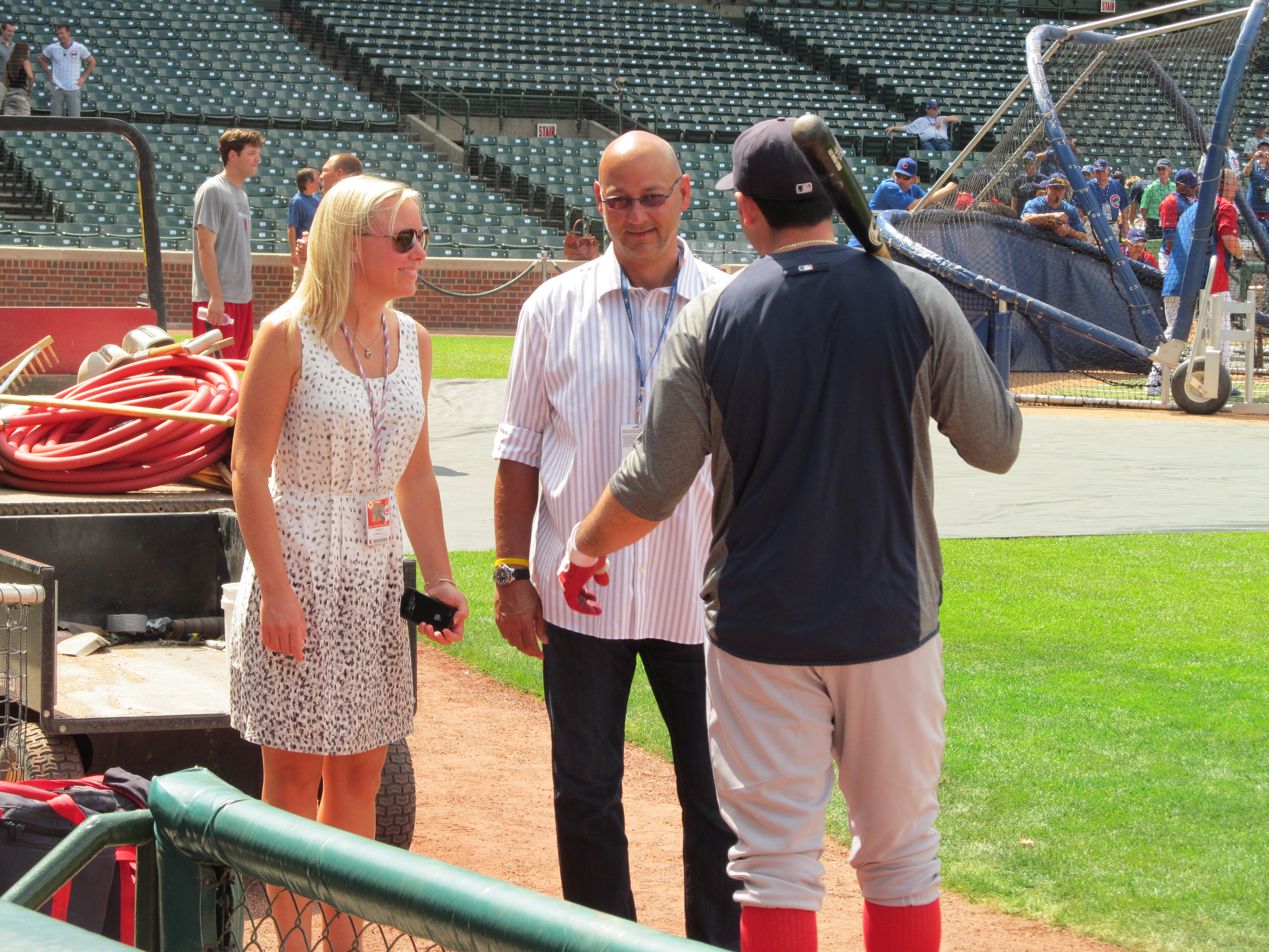 After the luncheon, we were allowed to hang out behind the Red Sox dugout while the Cubs and then the Sox took batting practice. In my mind I thought, “Yay! An opportunity to get some more quilt squares signed!” Silly me. Much to his credit, Ryan Sweeney stopped by and signed for many people. Even Carl Crawford stopped by and signed for a couple of little kids (but blew off the nearby adults). Ever hopeful, we stood in the blazing sun (the temperature was in the 90’s) for what seemed like forever. Surprisingly, Terry Francona popped out of the Red Sox dugout. He startled when we let out a cheer for him; but otherwise did not react to us standing there adoring him and remembering the good old days. Perhaps the good old days were not quite so good for Tito; but it’s not our fault.