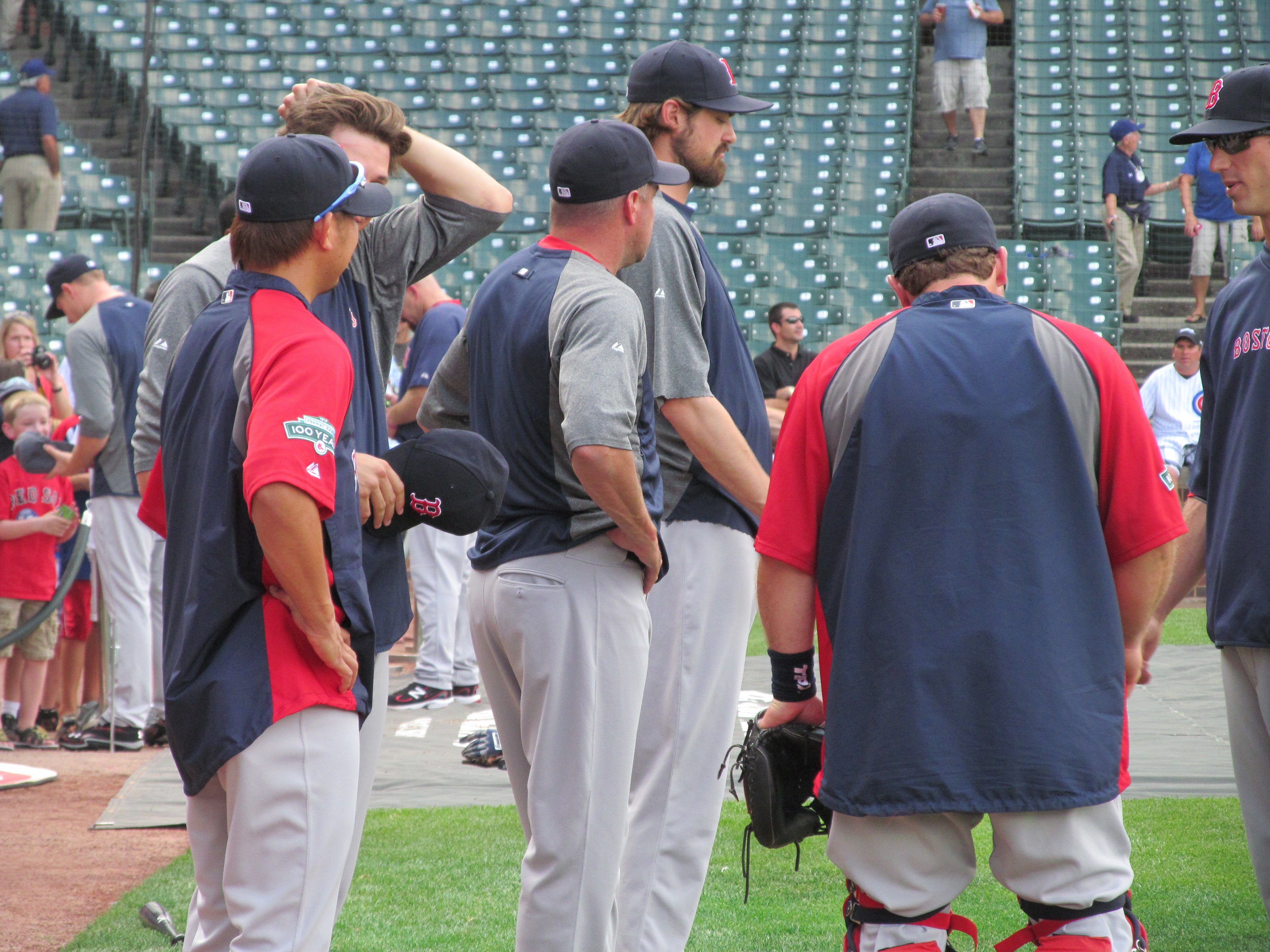 No other member of the Red Sox acknowledged the presence of the 60 or so Red Sox fans who paid a premium to travel through their organization from New England to Chicago to see them play the Cubs. Really? I realize that major league baseball players must constantly feel like they are being called upon to give away a piece of themselves. Turning their backs to fans and hiding under their caps while not even offering up a smile or wave is just plain unforgivable.